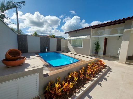 Casa com Piscina E churrasqueira 2 dormitórios sendo uma SUÍTE, 62 M2 área construída e 125 m2 área útil. por 309 Mil 2 vagas de Garagem Piscina grande 6.2.x 2.00 e com cascata!!! Distância de 1200 metros do mar, Aceita todos os financiamentos bancários.