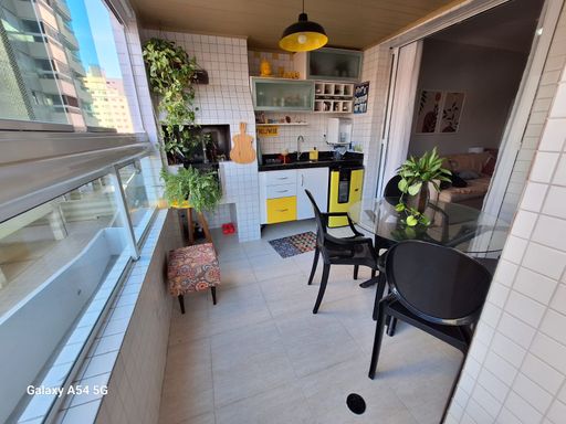 Sala 2 ambientes com sacada envidraçada com churrasqueira