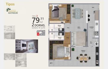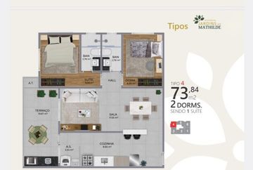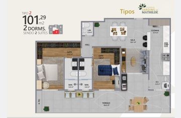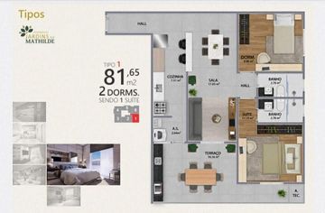- 2 quartos sendo com opções de 1 a 2 suítes