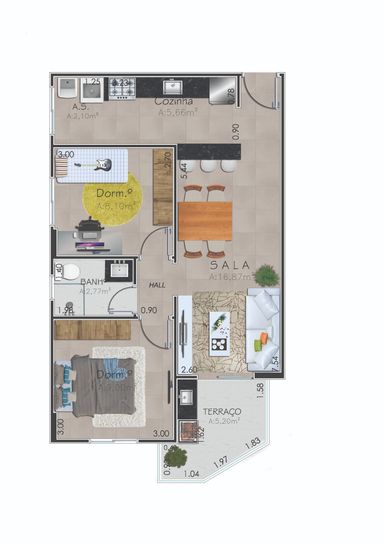 • 56,60 m² de área útil