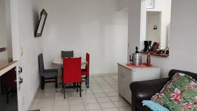 2 quartos, sala, cozinha, WC, área de serviço, excelente localização poucos metros do mar, próximo ao terminal Tático. Prédio com elevador .