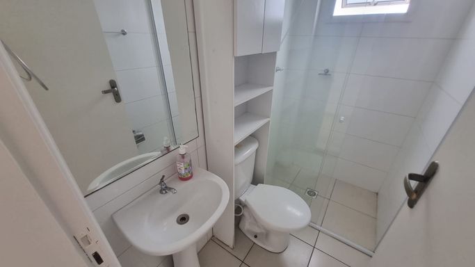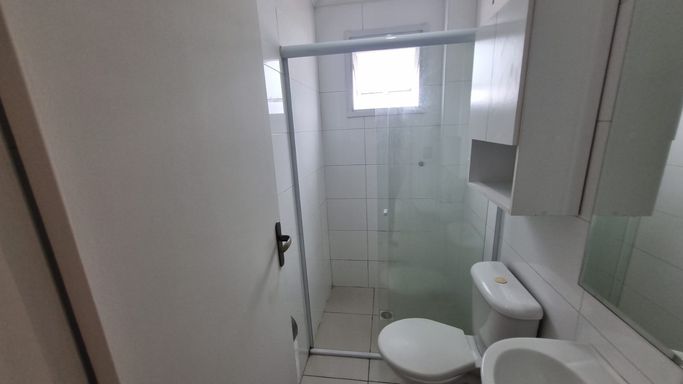Apartamento 2 dormitorios sendo 1 suite e banheiro social.