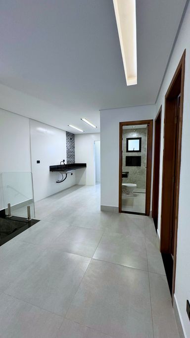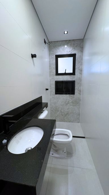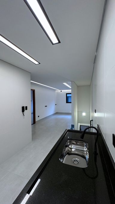 Acabamento em alto padrão: porcelanato, escadas em porcelanato e granito, churrasqueira e iluminação em LED.
