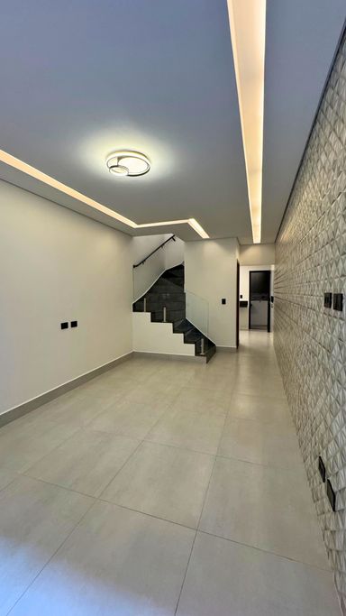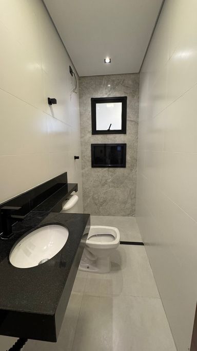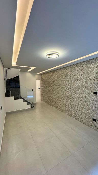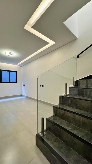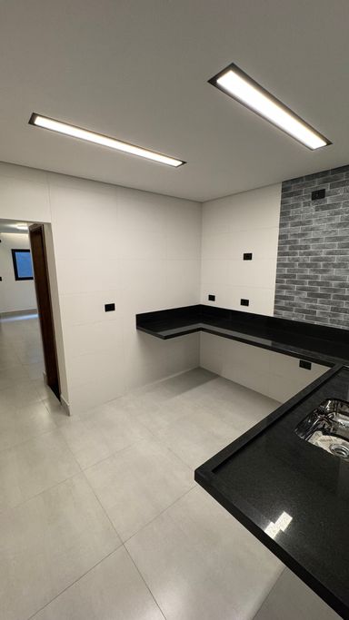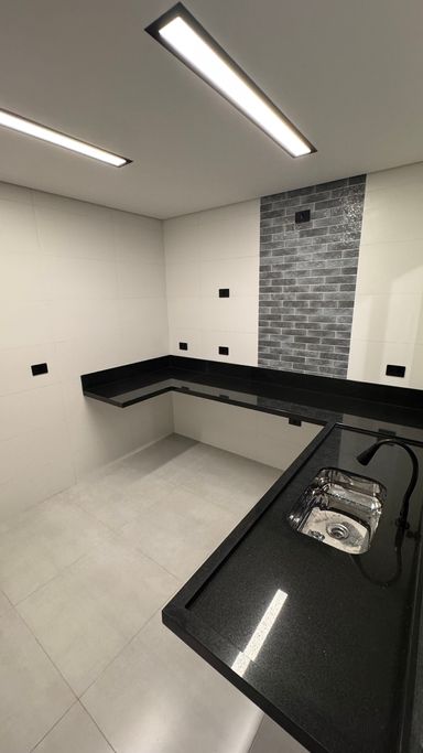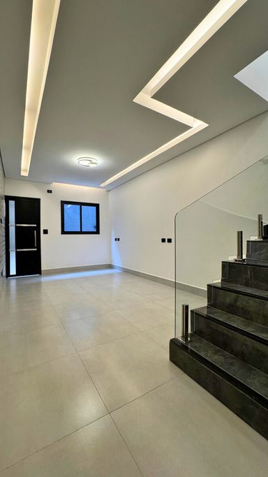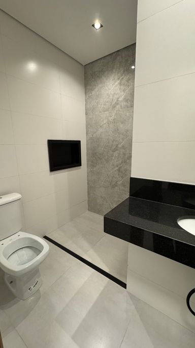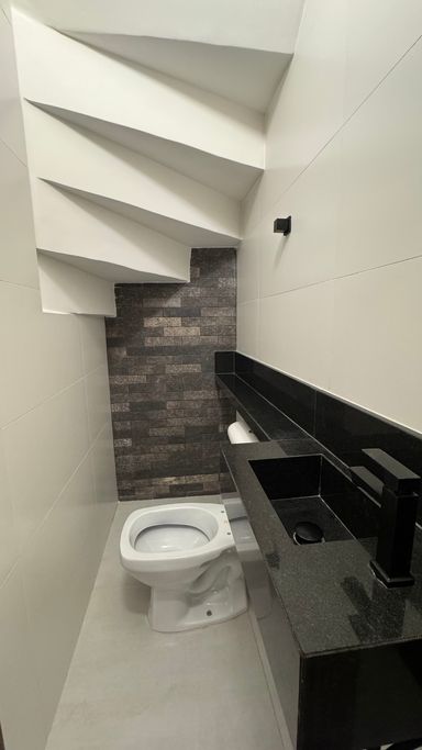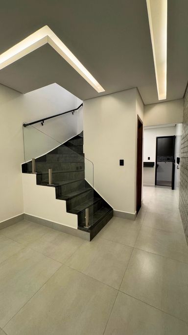 Acabamento em alto padrão: porcelanato, escadas em porcelanato e granito, churrasqueira e iluminação em LED.